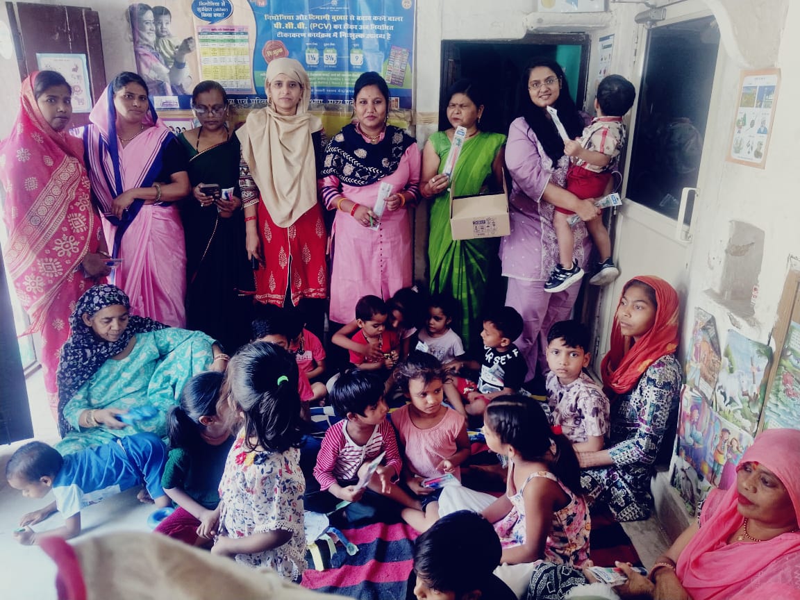 आंगनवाड़ी पर बांटी बच्चों को शिक्षण सामग्री