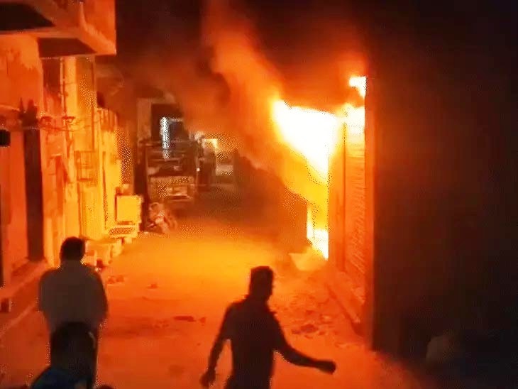 टेंट हाउस गोदाम में भीषण आग लगने से लाखों का सामान जला